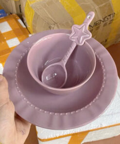 Muỗng: màu trắng, cán có hình ngôi sao cực đáng yêu, hợp vibe “kawaii – trẻ trung”.